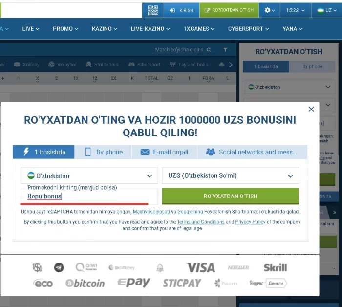 - Endi esa 1xBet ma'muriy sayti to'liq uzbek tilida.