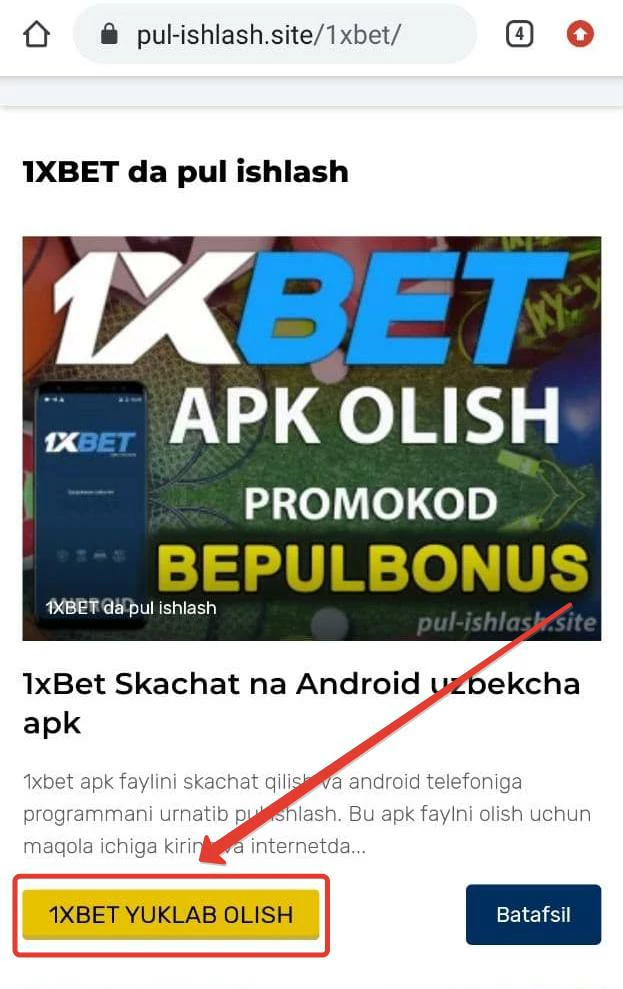 1xbet rasmiy saytining mobil versiyasiga kirish uchun, telefoningiz brauzeridan kirib, quyida taqdim etilgan havolaga bosing, ushbu havola orqali 1xbet saytining mobil versiyasiga kirasiz: