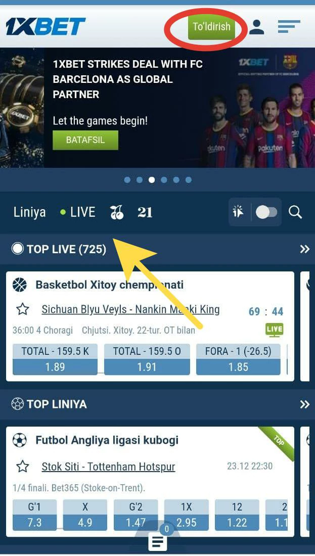 1xbet iPhone telefonida futbol, basketbol, tennis, xokkey va boshqa sport turlari bo'yicha jonli efirni ko'rish uchun siz bir nechta harakatlarni bajarishingiz kerak bo'ladi: